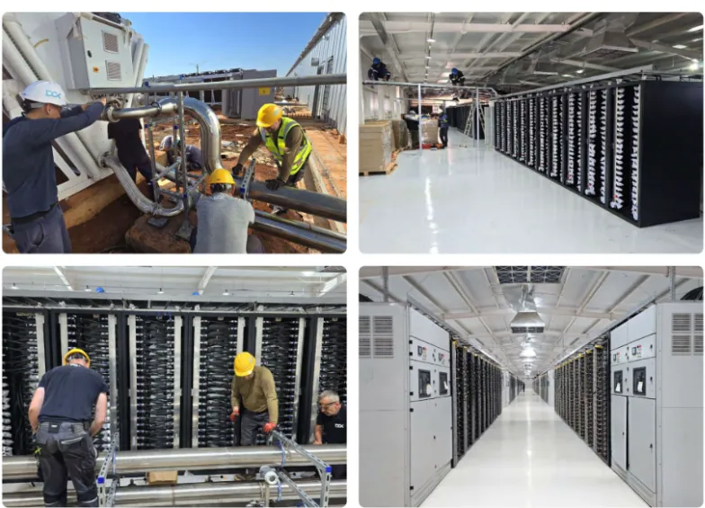The DCX team engineered a high-efficiency, fully sealed liquid cooling infrastructure. The system includes 12 closed-loop cooling circuits, each supporting 11 racks with space for up to 22 specialized servers per rack, engineered to operate continuously at extreme density levels exceeding 200 kW per rack. The entire cooling infrastructure was designed to maintain stable thermal conditions under full load, ensuring consistent inlet temperatures and preventing thermal throttling even during peak ambient conditions.